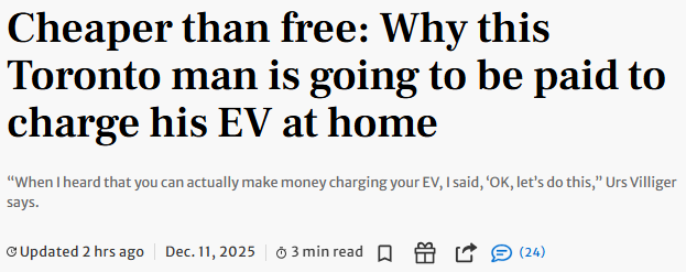 Toronto Hydro也确认:“未来电动车不仅能给车供电,还能给家、给设备供电,甚至回馈电网。V2L、V2H、V2G等技术正在快速推进。”