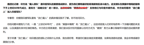 2020年9月14日,我国外交部对印军纳入“流亡藏人”的回答。图源:外交部网站