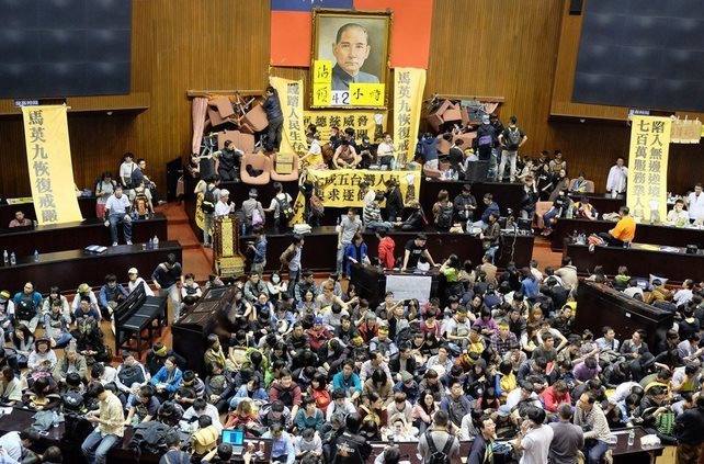 在台灣“反服貿”暴動中抗議者占領“立法院”