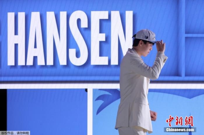 北京时间26日上午,在2025年美职篮(NBA)选秀大会中,波特兰开拓者队用首轮16号签选中中国球员杨瀚森。(人民日报客户端 王亮)