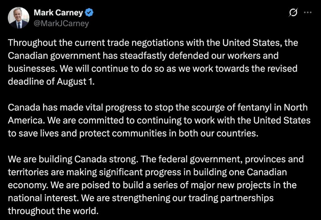 报道称,特朗普在其社交媒体平台发布的一封信中告知加拿大总理卡尼,新关税税率将于8月1日生效,若加拿大采取报复措施,税率还将进一步提高。