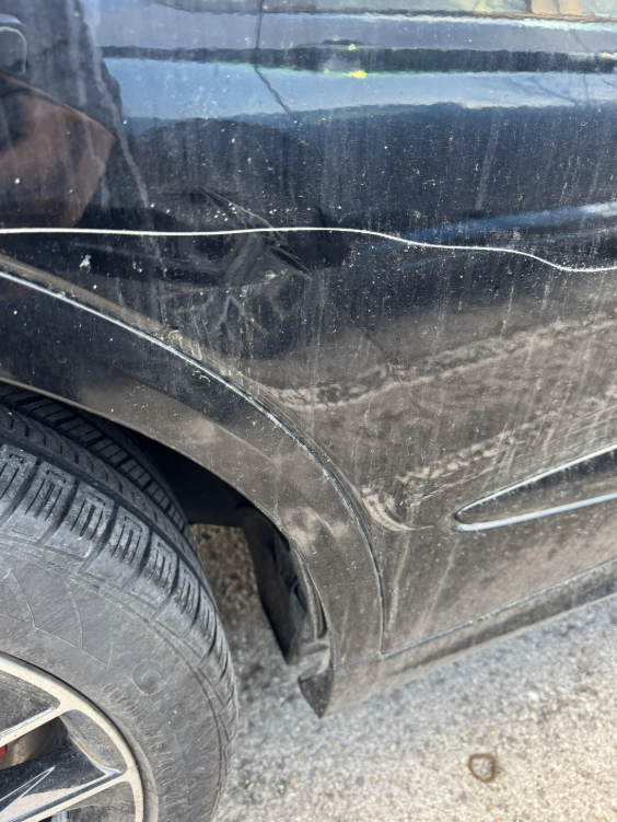 帖主车子被划的照片如下,也是从车后轮位置开始。更多细节可以点击传送门:气炸!多伦多Costco停车爆冲突:保时捷车主划车泄愤!三周后车被偷了!