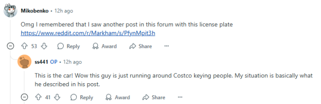 没错,他很可能是个“划车”惯犯。有网友发现,他就是前一段时间在Reddit上被曝光的保时捷车主,车牌号一模一样,也是发生在这家Costco的“划车”事件。