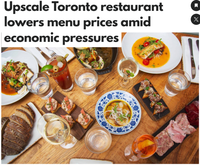 多伦多一家屹立13年的高档餐厅近日宣布降价,以更好地适应顾客日益紧缩的预算。