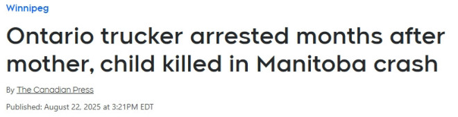 加拿大皇家骑警(RCMP)表示,一名安省卡车司机在被控逃避警方追捕长达九个月后终于被逮捕,他涉嫌曼尼托巴省一起,导致一名妇女和她8岁女儿死亡。