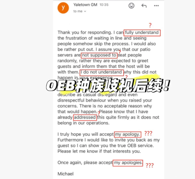 但仍然有很多华人网友表示,自己在OEB遇到过类似歧视的情形: