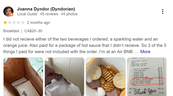 有多伦多网友吐槽:“我吃饭的时候服务员说下一波就是我们了,结果有两波比我们更晚到的人先去了,经理也不多解释,就说下一个是你们,并且还有上下打量的眼神。”