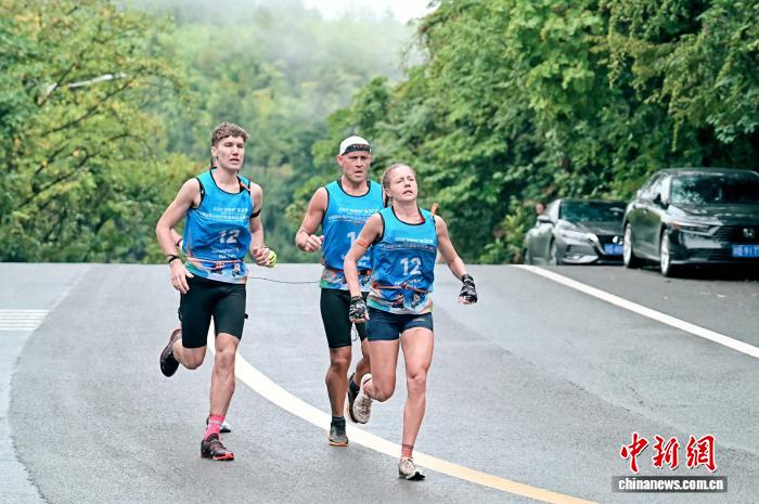 根据竞速赛规则,8名选手依次从海拔1458米的天门山玉壶峰山顶悬崖跃下,沿规定路线飞行,穿越预设旗门并绕行转向标,以穿过横亘在峡谷中的索道缆绳为终点,线路垂直落差990米、直线距离约1.3公里,用时最短者获胜。