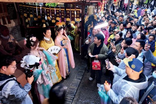 在特定主题下换装、近距离观看表演、与NPC互动、通过不同选择触发新支线……这样的沉浸式文旅产品正成为越来越多游客尤其是年轻游客的“新宠”。