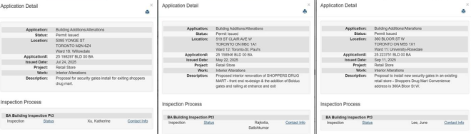 最近,多伦多多家Shoppers Drug Mart门店提交了建筑改造申请,计划在原有门店入口和出口处增设安全隔离闸门。