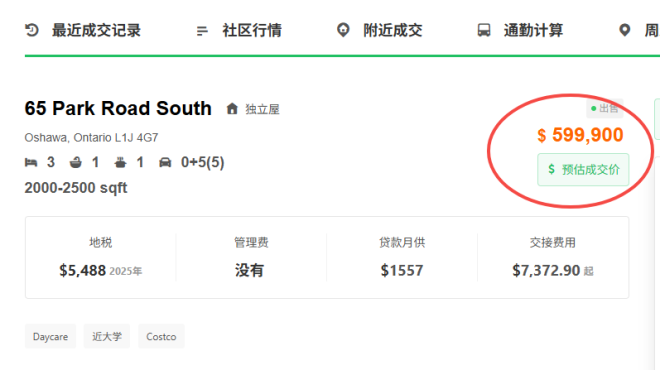 据51找房资料显示,位于Oshawa的65 Park Road South独立屋目前。
