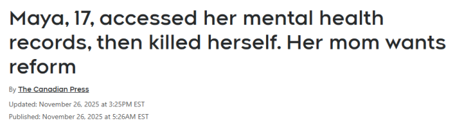 加拿大心理健康协会B.C.分部CEO Jonny Morris说,青少年获取病历可能涉及同意权或成熟度问题,但获取自己病历是一项权利。