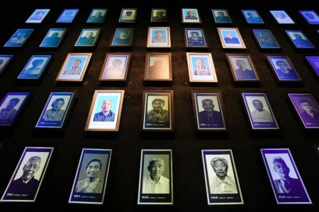 12月5日拍摄的侵华日军南京大屠杀遇难同胞纪念馆内的幸存者照片墙。 新华社记者 李博 摄。