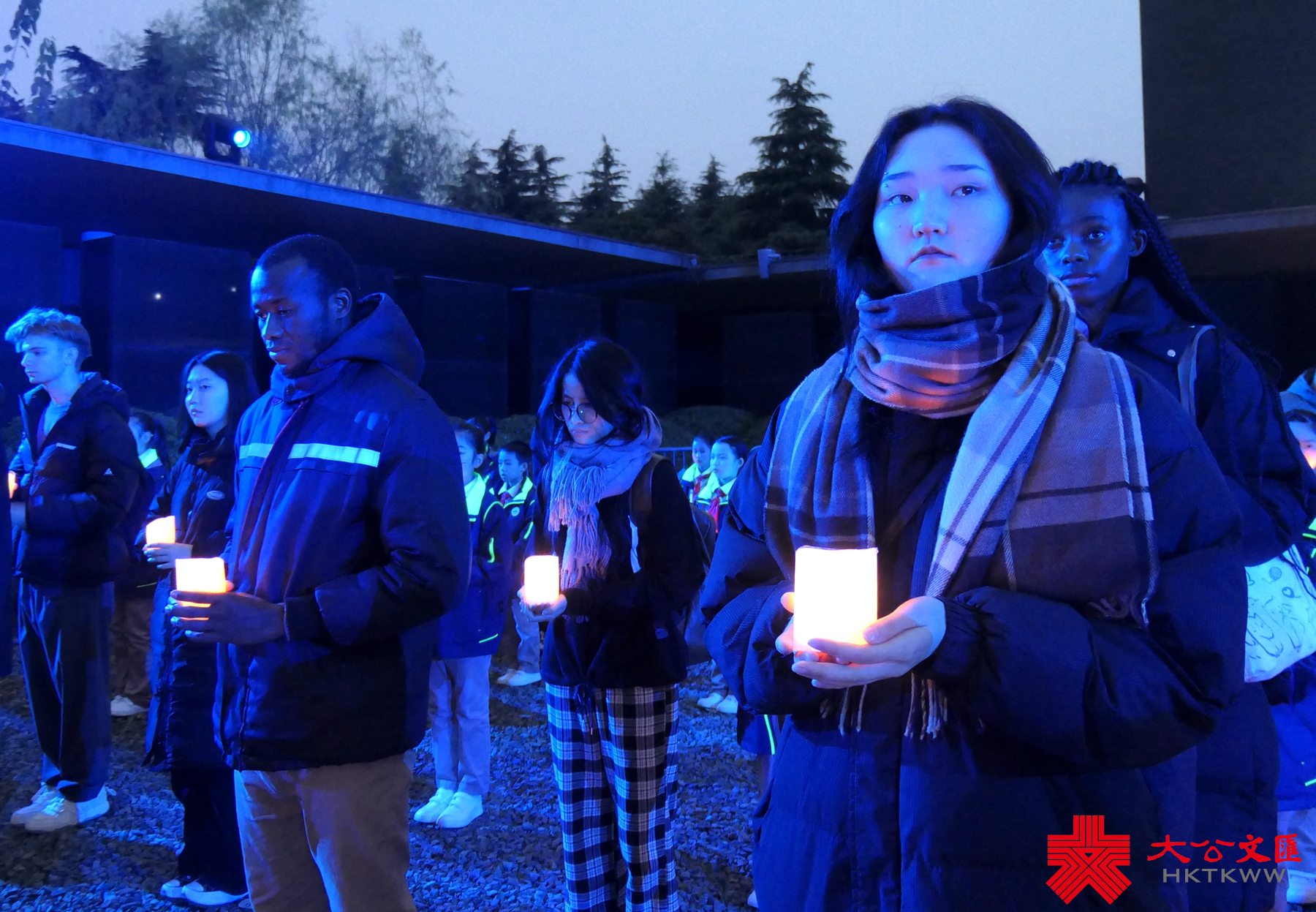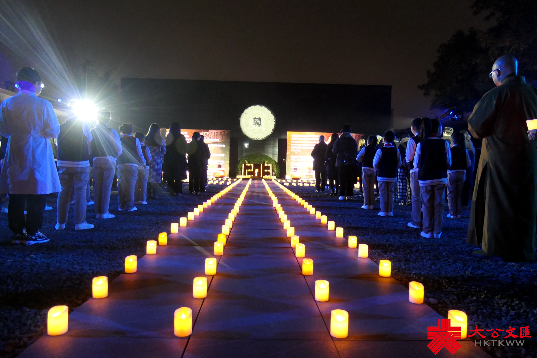 (大公文匯網記者 賀鵬飛 南京報道)12月13日晚,侵華日軍南京大屠殺遇難同胞紀念館內的祭場上,一柱柱燭光在冬夜的細雨中搖曳。中外各界人士在此舉行「燭光祭·國際和平集會」,向86年前慘遭侵華日軍屠戮的30萬死難者守靈。