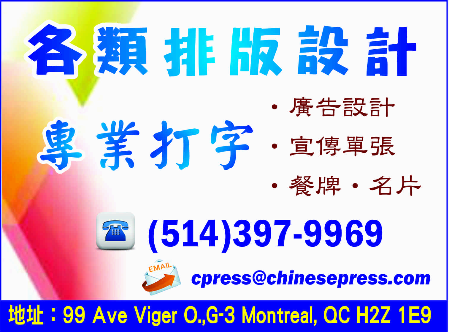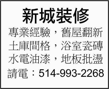 分类广告专题列表 Add to Favourites 室內裝修 正规空调安装公司 冷暖工程 Montreal Add to Favourites 商业服务 打字排版服务 打字服务 Montreal Add to Favourites 室內裝修 新城装修 装修维修 Montreal Add to Favourites 保健品 野花牌绿蜂胶 保健品 Markham Add to Favourites 保险公司 英杰保险公司 保险 Montreal Add to Favourites 地产经纪 森时旺角地产公司 地产 Montreal Add to Favourites 汽 车 永顺汽车维修服务中心 汽车 Brossard Add to Favourites 汽 车 Lexus Gabriel Brossard 车行 汽车 Brossard Add to Favourites 教育机构 James Lyng 成人教育中心 教育 Montreal Add to Favourites 地产经纪 詹鉅辉有限公司 地产 Brossard Add to Favourites 地产经纪 亨信地产公司 地产 Brossard